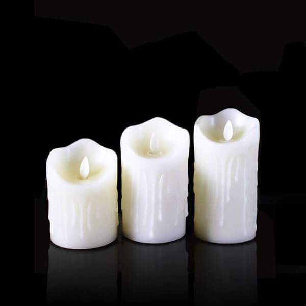 Bộ 3 nến điện tử vỏ sáp chảy với kích thước gọn nhẹ, phần vỏ ngoài có màu trắng sữa, chất liệu bằng nhựa bền bỉ, ít tốn kém hơn so với các loại nến sáp nhưng sắc độ phát sáng vẫn rất rực rỡ. Nến sử dụng năng lượng pin điện tử nên rất tiện lợi và tiết kiệm chi phí mà vẫn đạt hiệu ứng ánh sáng led tuyệt vời.