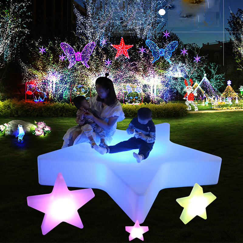Đèn led trang trí hình ngôi sao năm cánh với ánh sáng led có thể điều chính 16 màu theo ý thích. có khả năng chống thấm nước có thể trang trí ngoài trời, công viên, sản phẩm còn có thể dùng làm ghế ngồi phát sáng tạo, đèn trang trí phòng ngủ...