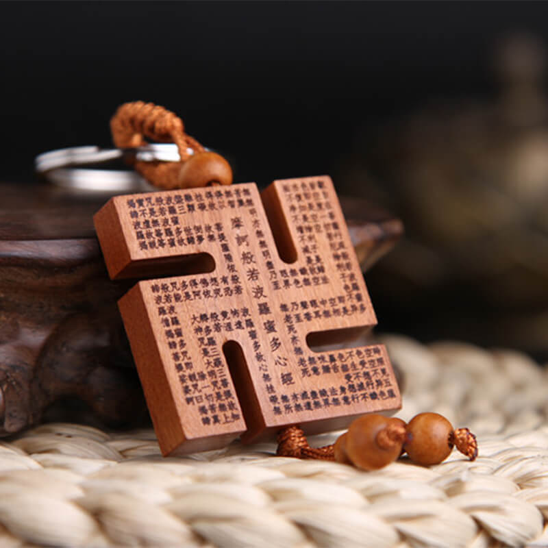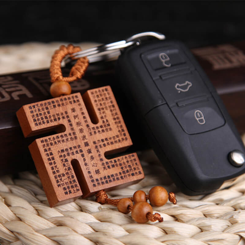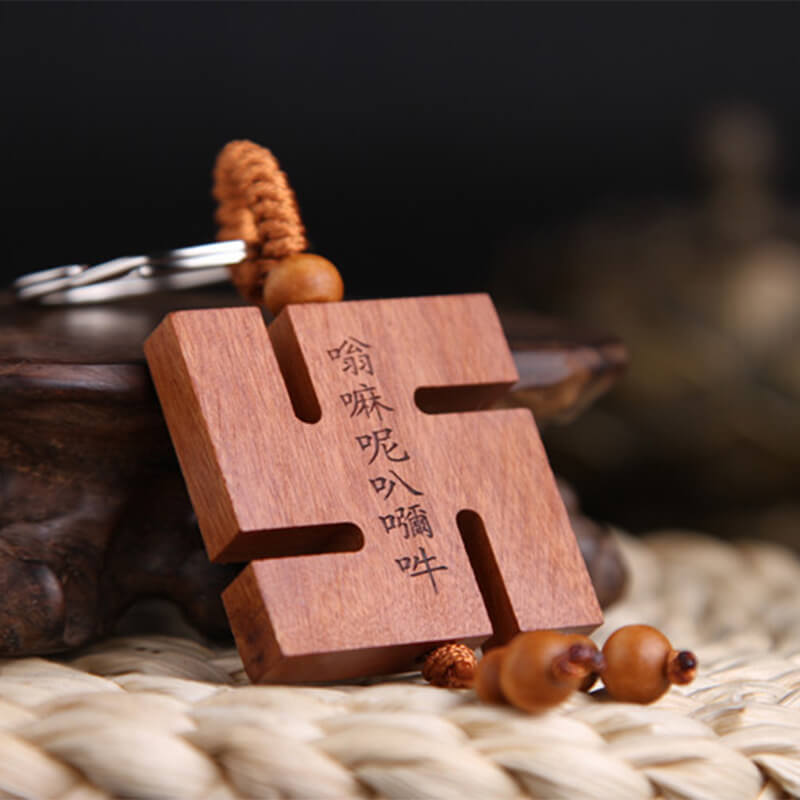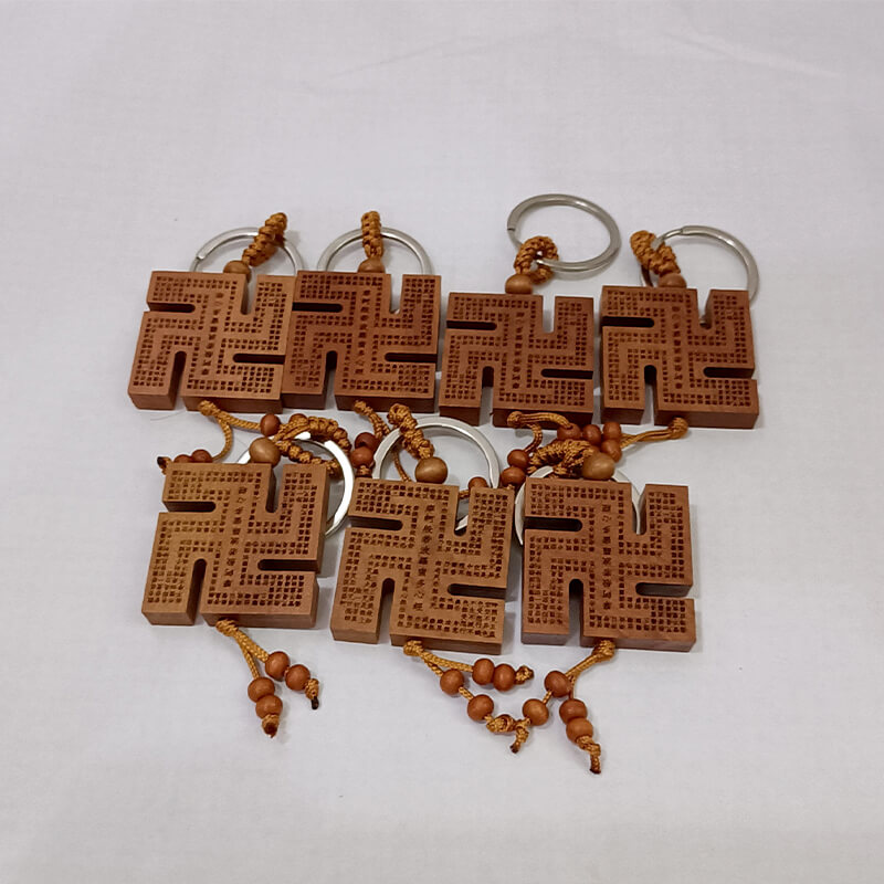 Tên sản phẩm: Móc khóa gỗ Tam Kinh Chữ Vạn