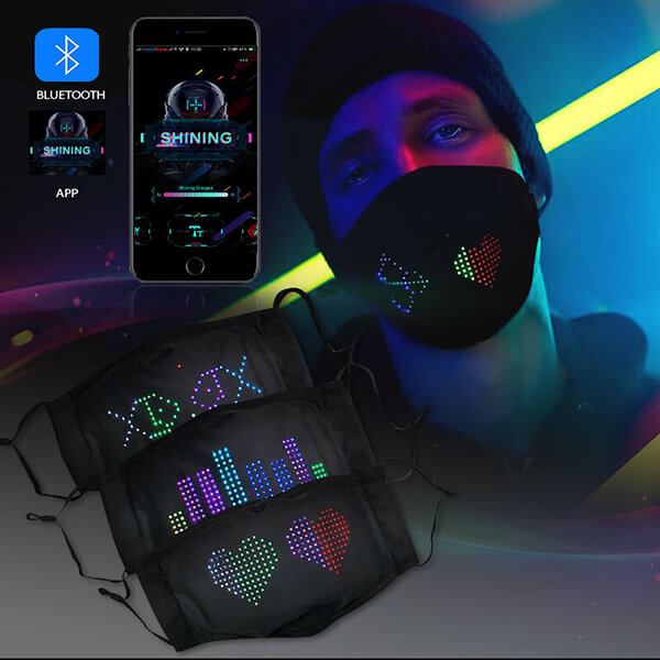 Ngày nay, việc đeo khẩu trang khi ra ngoài đường đã thành thói quen bắt buộc đối với chúng ta, cũng chính vì quá quen thuộc với kiểu dáng màu sắc của khẩu trang đã khiến nhiều người cảm thấy bị nhàm chán. Vì thế, các nhà nghiên cứu đã lên ý tưởng sáng tạo kết hợp giữa thiết kế thời trang và công nghệ thông minh đã cho ra mắt dòng sản phẩm Khẩu trang có đèn led kết nối Bluetooth với Smartphone thông minh, thông qua trình duyệt app để hiển thị thông điệp mà bạn muốn nói. Chiếc khẩu trang thú vị này hứa hẹn sẽ tạo nên xu hướng mới trên thị trường của dòng sản phẩm gắn đèn LED phát sáng rực rỡ.