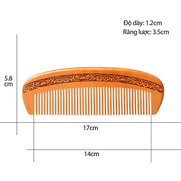 Kích thước: 5.8cm x 14cm x 17cm, độ dày: 1.2cm, răng lược: 3.5cm