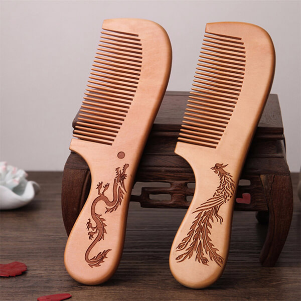 Lược chải tóc bằng gỗ đào trạm khắc long phụng có thiết kế vừa vặn tay cầm, dễ dàng mang theo bất kì đâu, là một trong những vật dụng làm đẹp cho tóc không thể thiếu của mọi người phụ nữ. Thích hợp dùng cho mọi lứa tuổi, cả nam và nữ.