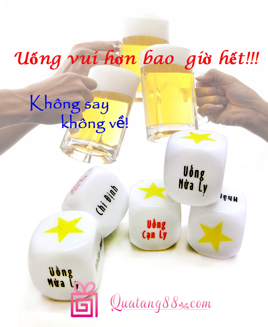 Xí ngầu với chất liệu bằng nhựa trắng, khối lập phương có sáu mặt đều in chữ rõ ràng. Khi lắc trúng mặt nào sẽ quyết định lượng bia mà bạn phải uống. Như thế cuộc say cùng đồng đội sẽ trở nên cực đã và vô cùng hào hứng!!!!