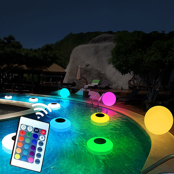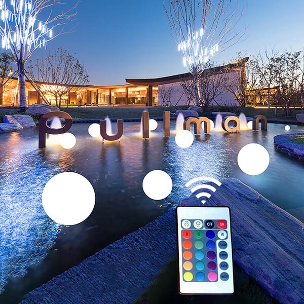 Quả cầu đèn led chiếu sáng trang trí nổi trên nước với công nghệ chiếu sáng tiên tiến, sử dụng để thắp sáng sân hiên, bãi cỏ hoặc đặt trong hồ bơi, ao, đài phun nước...tạo không gian lung linh và lãng mạn. Quả cầu đèn led chiếu sáng trang trí nổi trên nước có khả năng chống thấm nước tốt, rất hiệu quả trong việc trang trí không gian trên các bề mặt nước nổi và tính năng điều khiển từ xa bằng remond sẽ vô cùng tiện lợi để bạn có thể điều chỉnh ánh sáng đèn led ở khoảng cách từ phía xa.