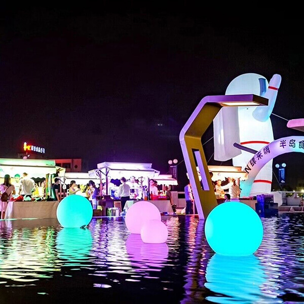 Quả cầu đèn led chiếu sáng trang trí nổi trên nước với công nghệ chiếu sáng tiên tiến, giúp thắp sáng sân hiên, bãi cỏ hoặc đặt trong hồ bơi, bãi tắm, đài phun nước.... tạo nên không gian lung linh và lãng mạn. Việc lắp đắp hệ thống chiếu sáng theo ý tưởng trên là lựa chọn thông minh, vừa đáp ứng được nhu cầu trong việc trang trí không gian mà còn tiết kiệm chi phí và có độ bền theo thời gian.