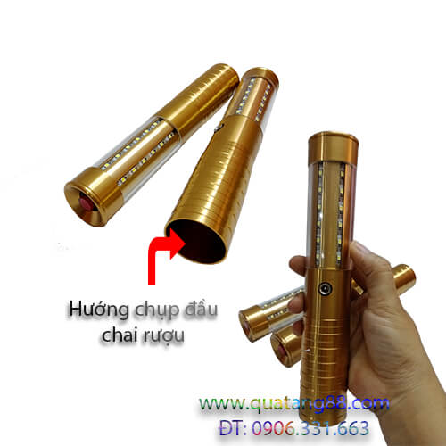 Với thiết kế mô phỏng theo hình chai rượu cao cấp, được làm từ chất liệu kim loại bền bỉ màu sắc sáng bóng, phần mạch điện tử có gắn đèn led siêu sáng, sử dụng đèn led phát sáng vừa tiết kệm chi phí mà hiệu quả đạt được hơn cả mong đợi