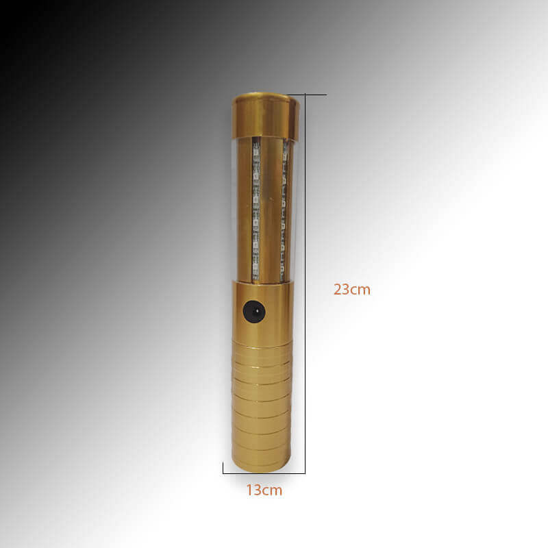 Đèn led màu xanh báo hiệu thanh chụp còn năng lượng, trạng thái off thanh có màu vàng đồng đẹp cầm vừa tay, tiện lợi khi mang đi hoặc thường xuyên di chuyển.