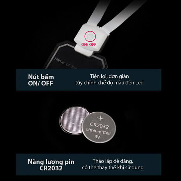 Tên sản phẩm: Thẻ nhựa đeo cổ gắn đèn led phát sáng - Nhận khắc laser theo yêu cầu