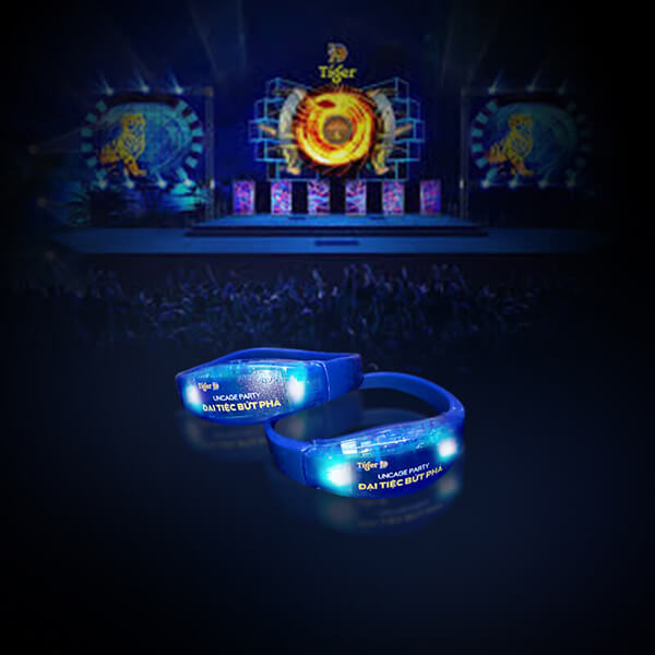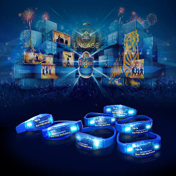 Vòng tay led dán decan logo Tiger chạy sự kiện quảng cáo cho thương hiệu hãng bia Tiger nổi tiếng.