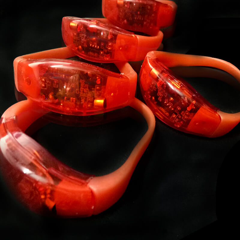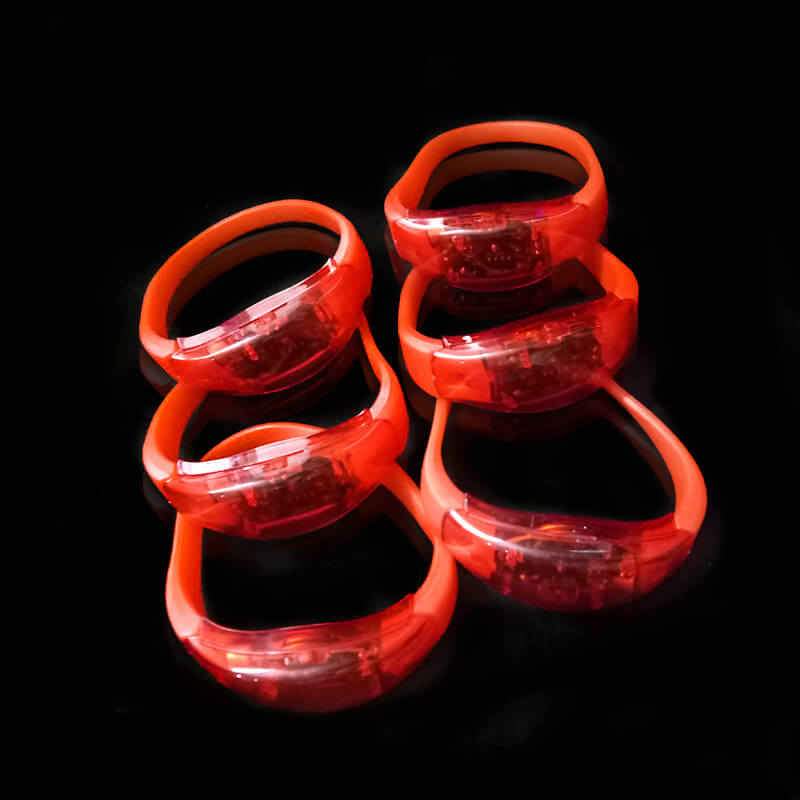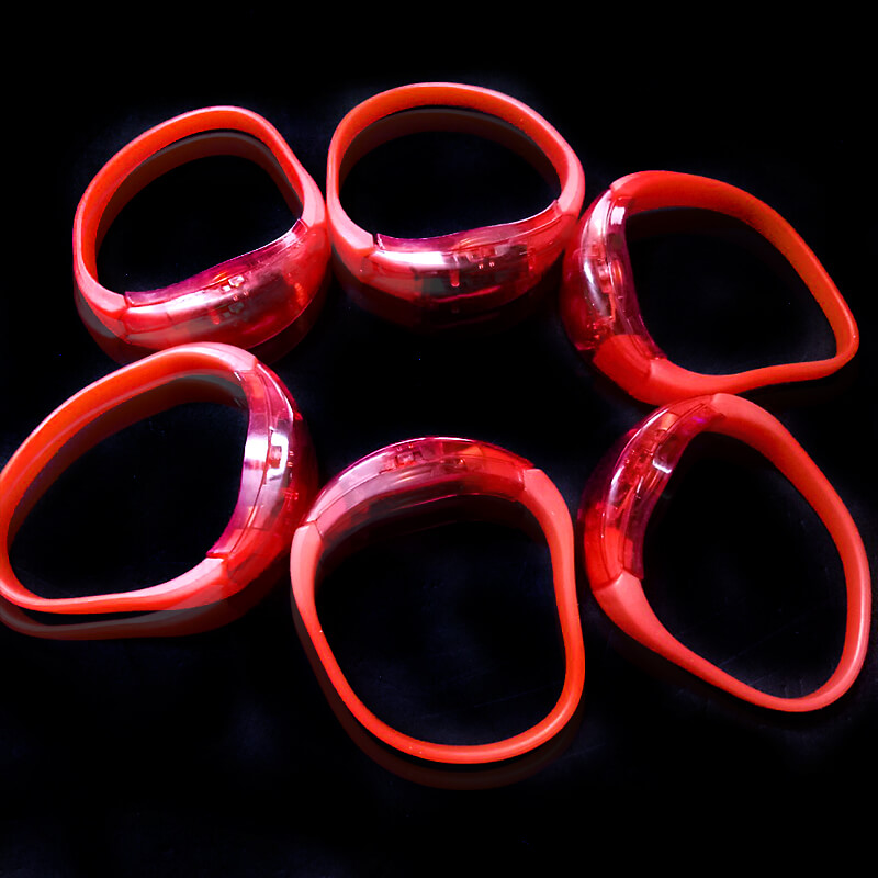 Vòng led đeo tay phát sáng màu đỏ có tính năng cảm ứng âm thanh, tạo hiệu ứng ánh sáng lung linh chớp sáng theo điệu nhạc chuyên dùng cho các sự kiện âm nhạc, gameshow, quán bar, Karaoke.... Vòng led đeo tay phát sáng màu đỏ chất lượng tốt giá rẻ tại TP.HCM.