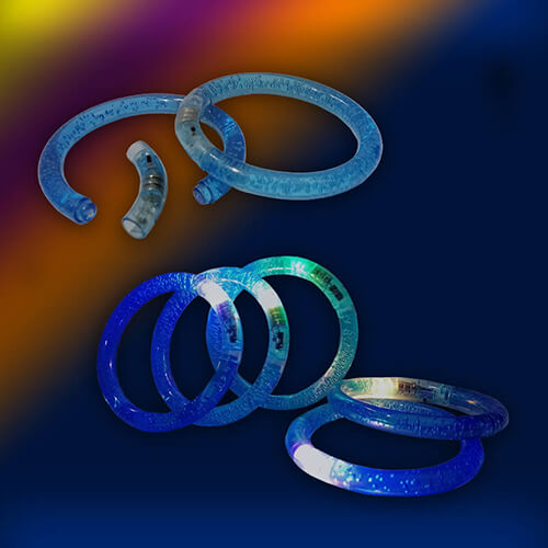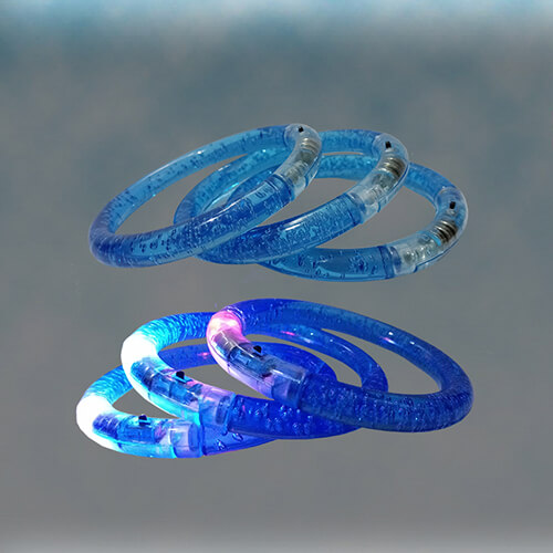 Vòng đeo tay đèn led với ánh sáng led 7 màu nhấy nháy xuyên qua vỏ xanh dương với những hạt nhỏ nhỏ trên thân vòng như những giọt nước biển...