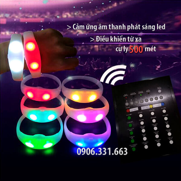 Vòng tay led phát sáng với tính năng nổi trội: cảm ứng nhạc và bộ điều khiển từ xa cự ly 500 mét tạo hiệu ứng ánh sáng lung linh trong các đại nhạc hội, bar, tiệc tùng hoành tráng. Vòng tay led phát sáng tạo nên xu hướng công nghệ hiện đại của dòng dụng cụ cổ vũ.