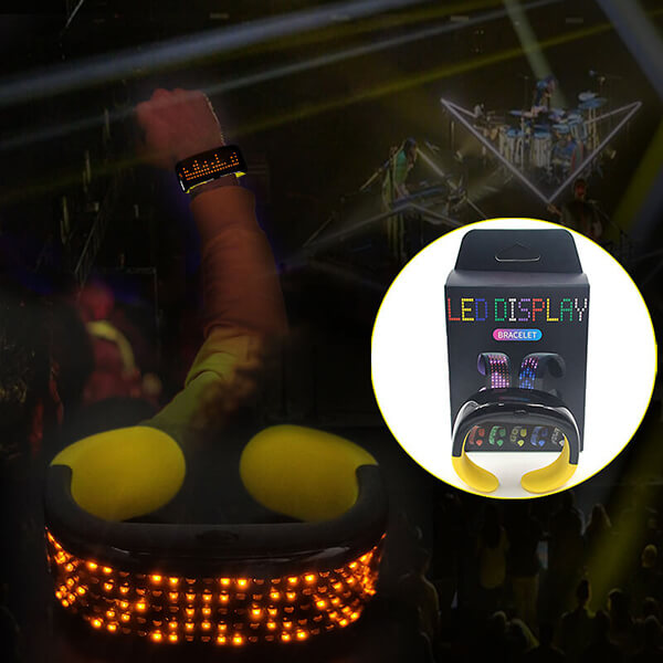 Vòng tay led phát sáng vàng màn hình hiển thị 8 chế độ với các hình họa chuyển động led màu vàng độc đáo và mới lạ. Sản phẩm được xem là dòng công nghệ chiếu sáng hiện đại, thích hợp sử dụng làm đạo cụ trình diễn sân khấu hay đêm nhạc điện tử sôi động. Với thiết kế thời trang, cùng khả năng phát sáng led siêu đẹp, giúp mang lại một phong cách sành điệu, chất ngầu cho người sử dụng.